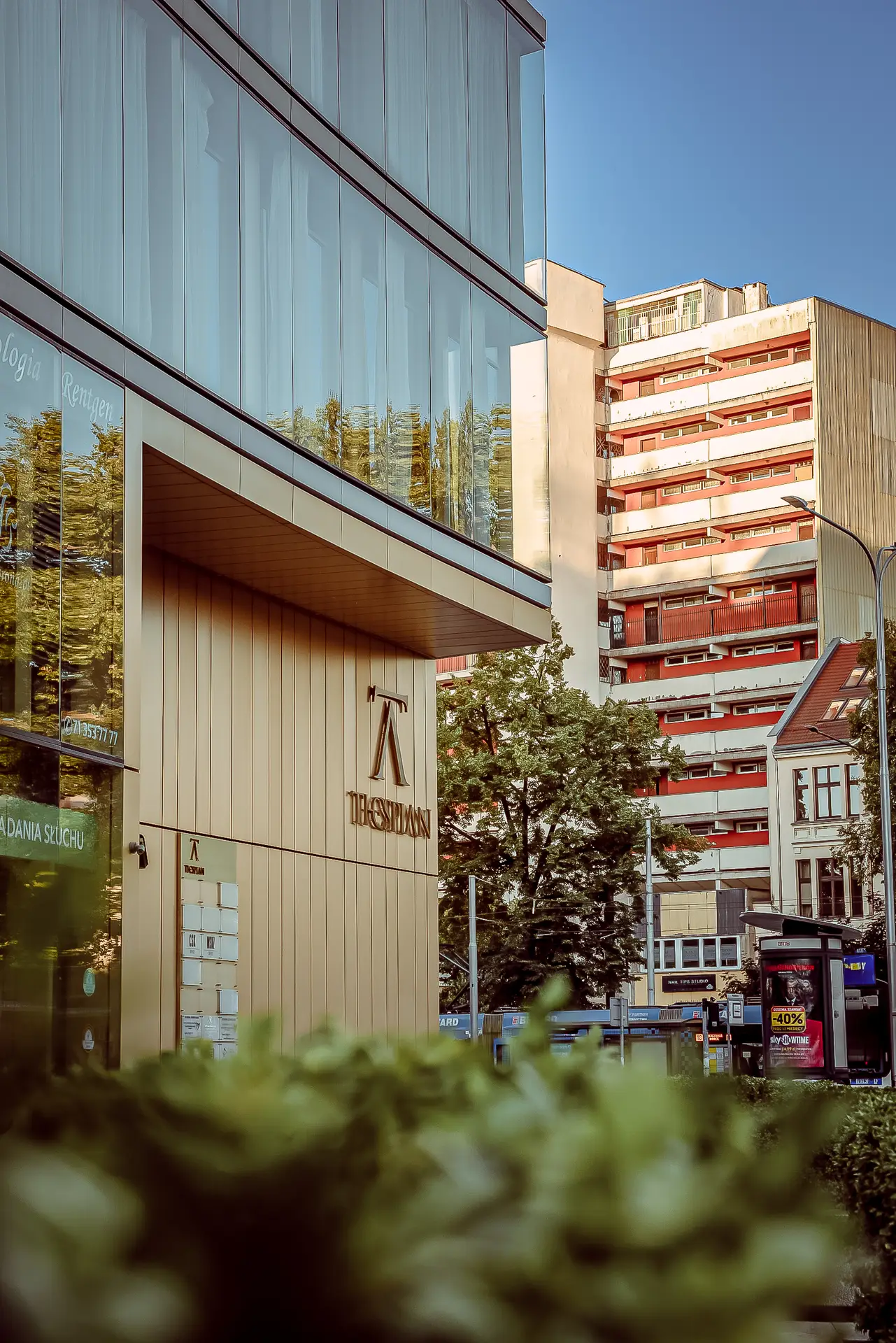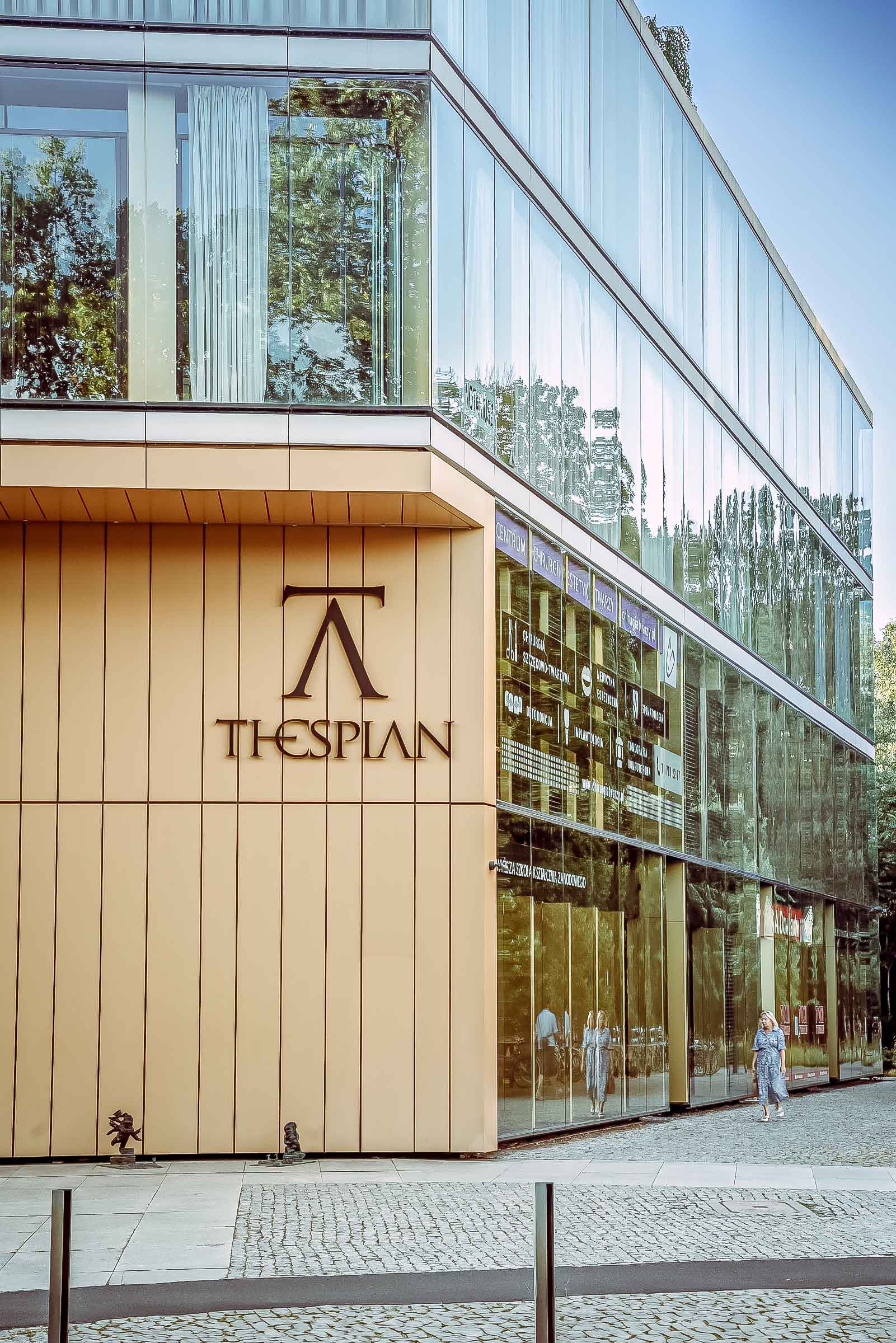 Rany, które zadał tkance miejskiej rok 1945, tworzą w tej okolicy wyjątkowy kontrast. Reprezentacyjne kamienice wokół Placu Powstańców Śląskich kończą się jak nożem uciął. Dalej na północ stoją pudełka peerelowskiego osiedla mieszkaniowego Południe. Pierzejowa zabudowa ustępuje miejsca porozrzucanym w zieleni blokom. Zamiast 25-metrowych budynków nagle pojawiają się 40-metrowe. Maćków uparł się, że wykreuje płynne przejście między tymi dwiema rzeczywistościami. W opinii ekspertów udało mu się bardzo dobrze. Ukończony w 2010 roku Thespian zdobył grand prix XXII edycji konkursu „Piękny Wrocław”. Był też nominowany między innymi do nagrody „World Building of the Year” na Międzynarodowym Festiwalu Architektury w Barcelonie.