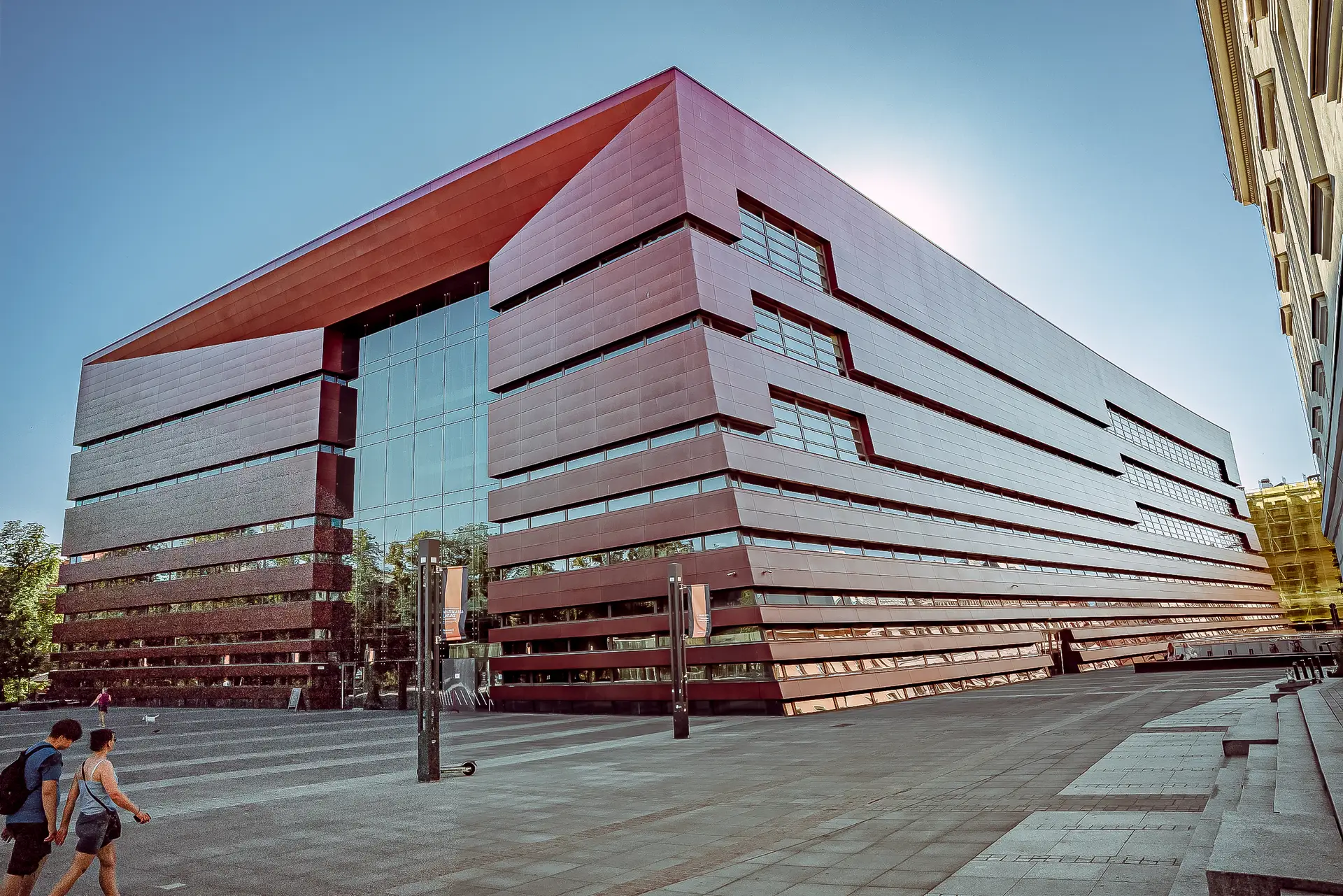 Ta bryła przypomina futerał lub wyłaniający się z niego instrument smyczkowy. Projektanci z Kuryłowicz & Associates Architecture Studio jednak ani myśleli stawiać w swoim przekazie na dosłowność. Obserwatorze, interpretuj sam, co tutaj widzisz!
