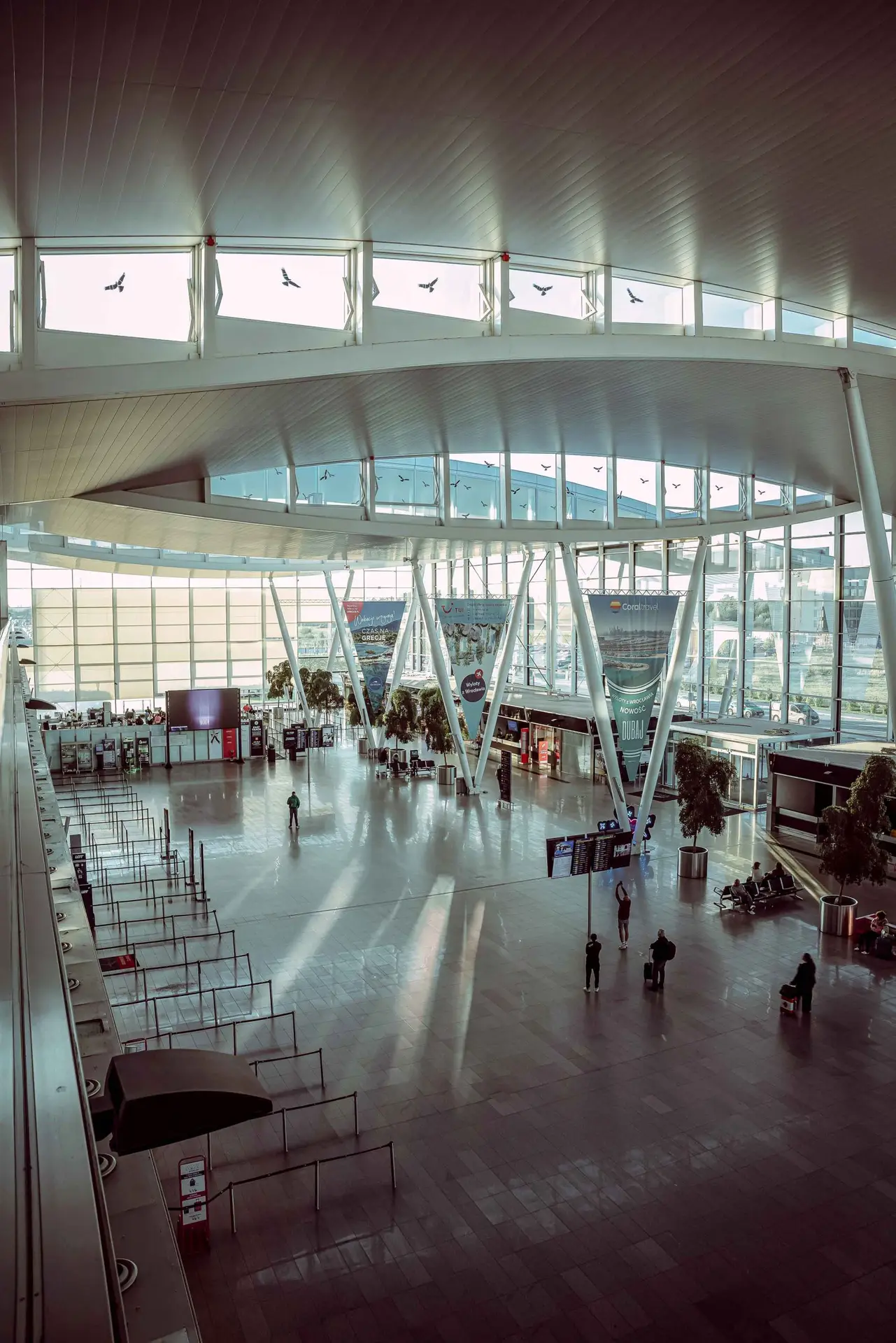 Z zewnątrz sprawia wrażenie, jakby jego dach cały czas falował na wietrze, co nie tylko interesująco wygląda, ale ma też znaczenie praktyczne - uformowane w ten sposób świetliki dachowe wpuszczają dużo dodatkowego światła. Dzięki temu i tak niemała przestrzeń (330 tys. m3 kubatury) stwarza iluzję o wiele pojemniejszej niż w rzeczywistości.