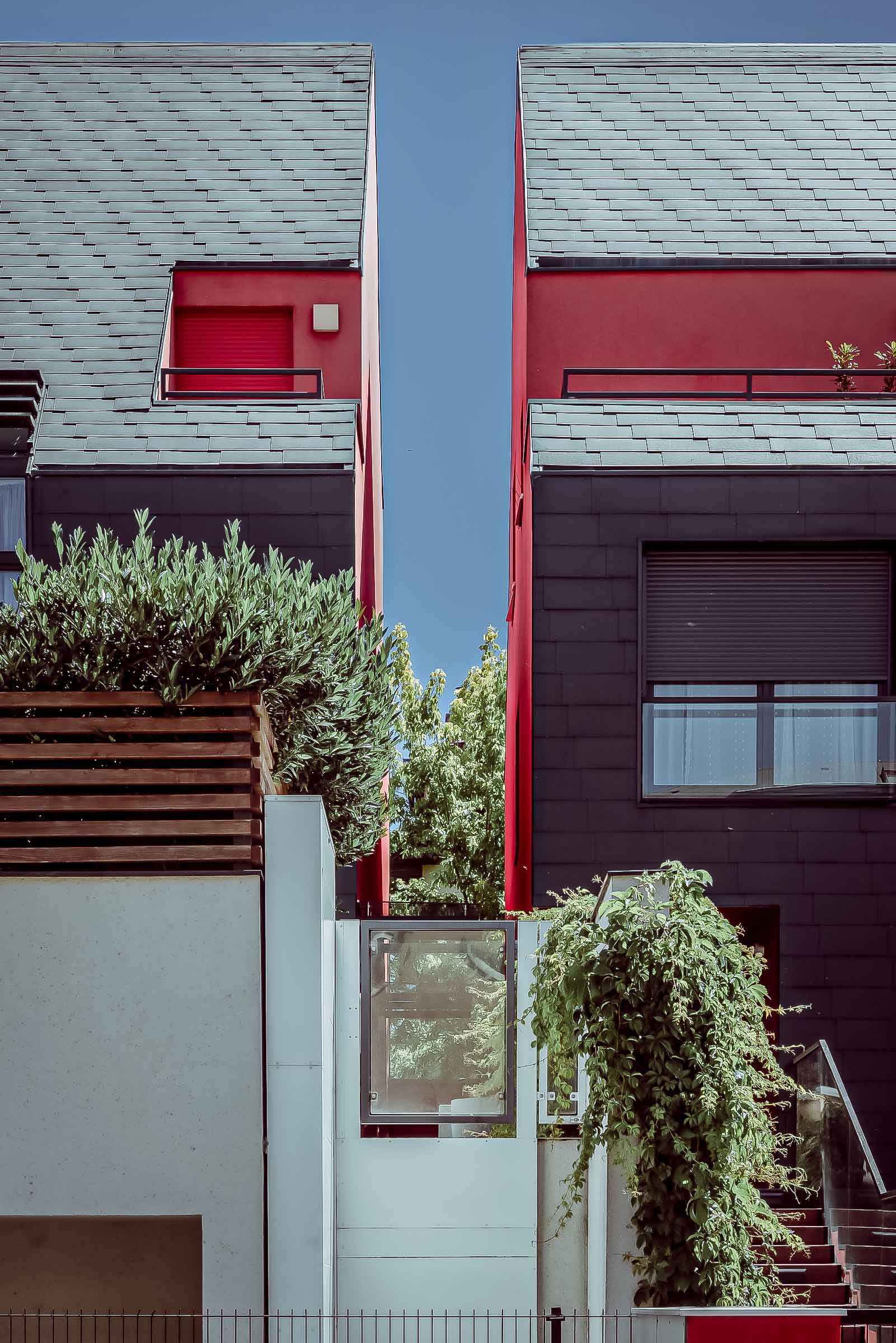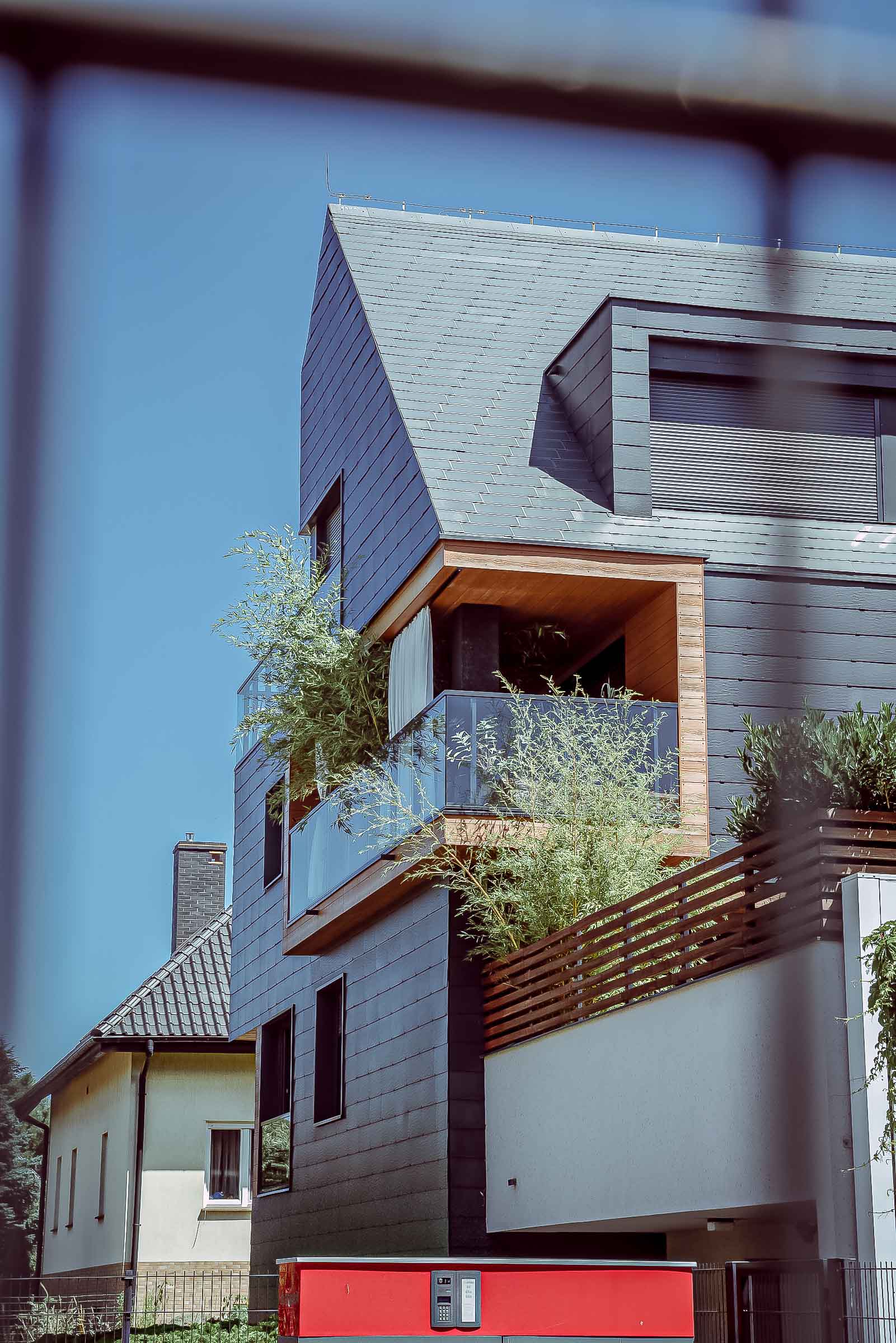 Główne twarze ArC2 to wrocławscy architekci: Mariusz (zmarł w 2019 roku) i Dorota Szlachcicowie. Przy poszczególnych realizacjach w różnych konfiguracjach pojawiały się też inne nazwiska. Przy tym konkretnym projekcie na Ołtaszynie pracowali: Mariusz Szlachcic, Renata Gajer-Hackemer i Robert Budny. Co znajdziemy przy Obrońców Poczty? Kameralne założenie, na 40 mieszkań, w którym każda klatka ma niepowtarzalną, odważną i urozmaiconą bryłę. Na tych budynkach dzieje się naprawdę dużo, ale obserwator nie odnosi wrażenia, że patrzy na chaos. Całość uporządkowano konsekwentnym podkreślaniem poszczególnych elementów kolorem i fakturą. Zwraca uwagę niecodzienne pokrycie elewacji. Jest ona zrobiona z płyt z włókna cementowego, tak zwanego struktonitu, odpornego nie tylko na zmiany temperatury, ale też na promieniowanie UV. Dzięki temu całość po kilkunastu latach nadal ma żywe kolory i dobrze wygląda.
