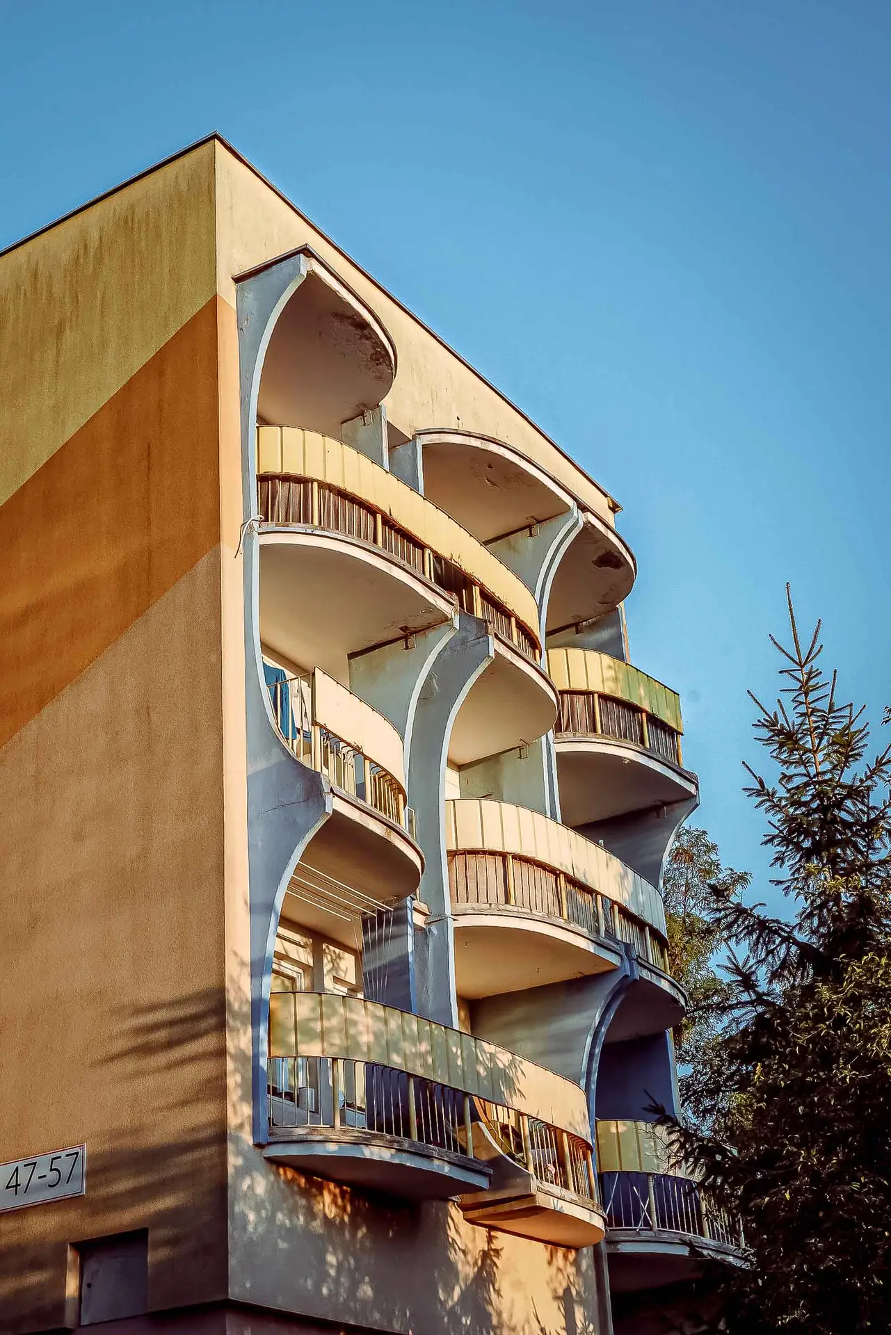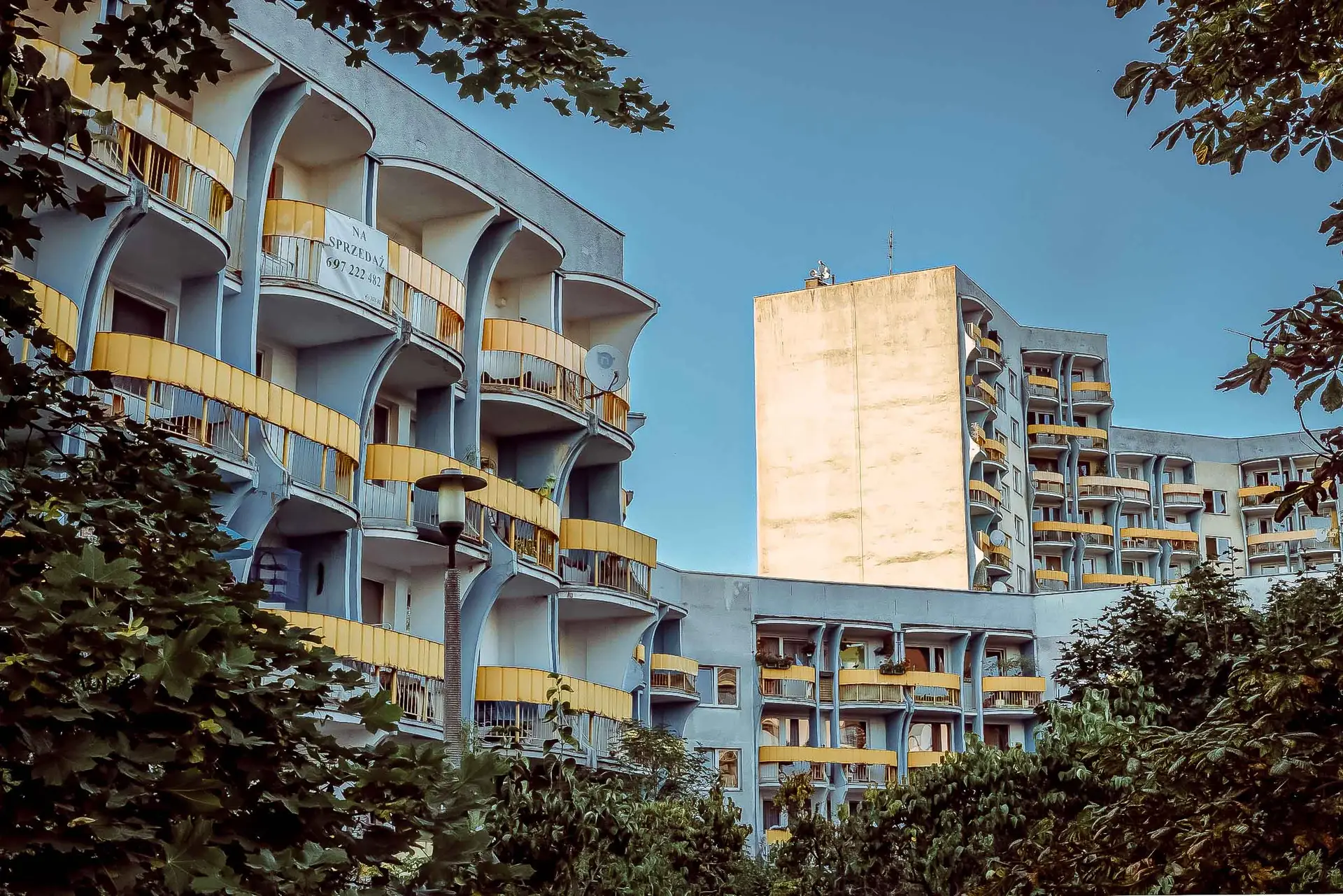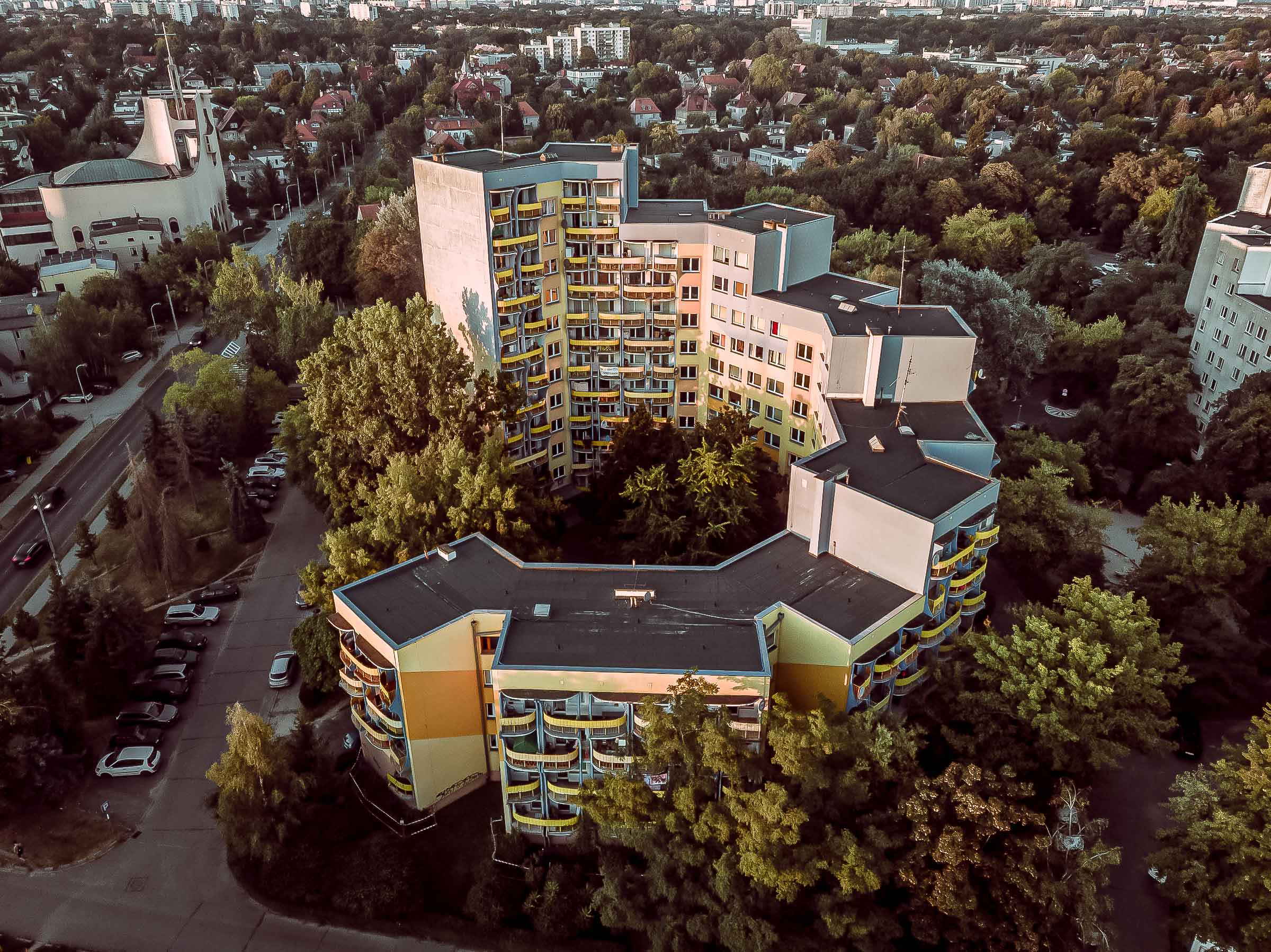 Na Osiedlu Przyjaźni Polsko-Radzieckiej (bo tak brzmiała jego nazwa w PRL-u) Molicki walczył z architektoniczną nudą na wszelkie dostępne sposoby. „Łamał” poszczególne segmenty bloków względem siebie o 45 stopni. Kaskadowo różnicował wysokości, bawiąc się formami liczącymi od trzech do jedenastu pięter. Intrygująco porozrzeźbiał zaokrąglone balkony na południowych stronach bloków. Na koniec robót ich balustrady pomalowano energetycznymi żółciami i pomarańczami – przyznajemy, że oryginalna kolorystyka osiedla była spójniejsza niż obecnie.