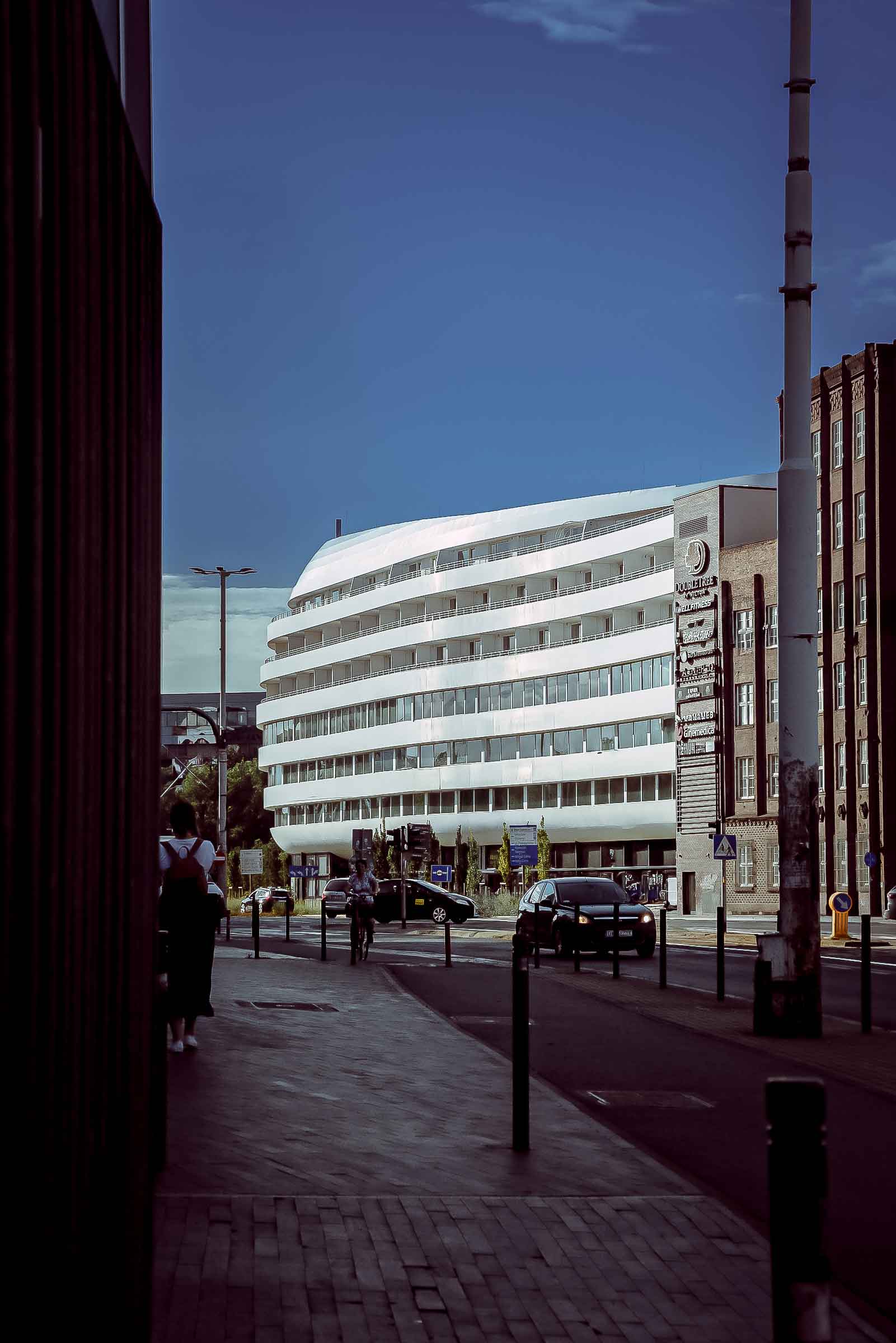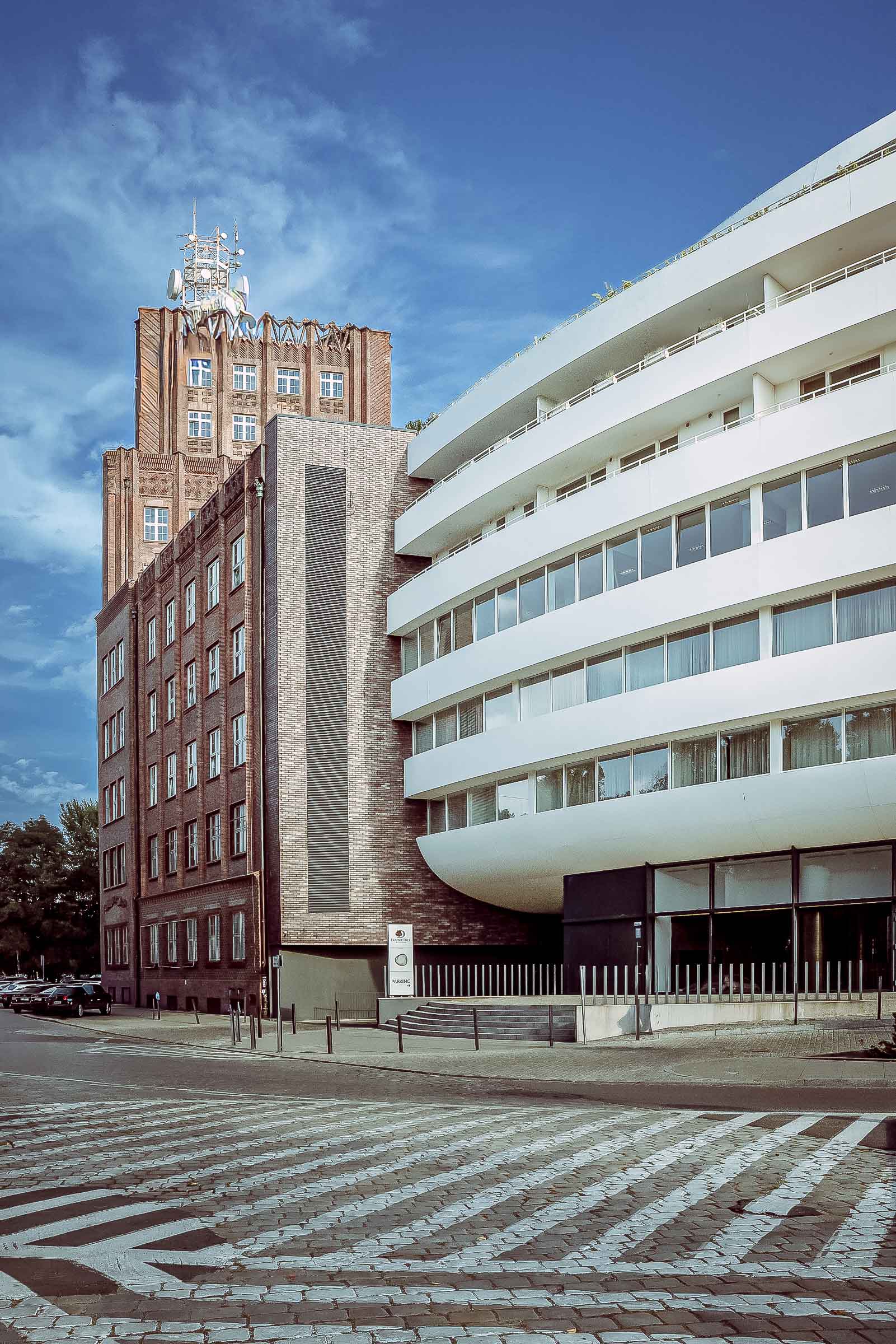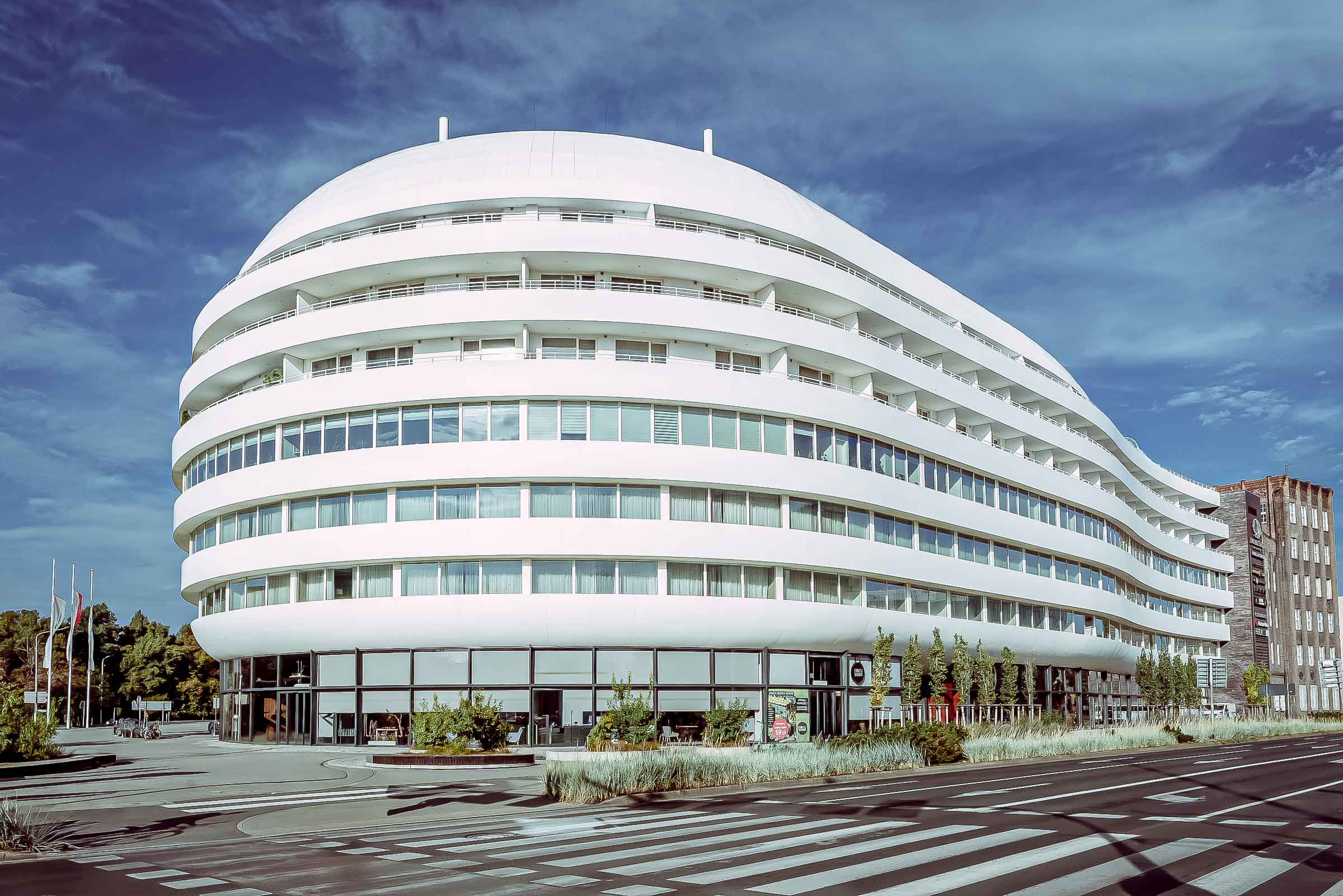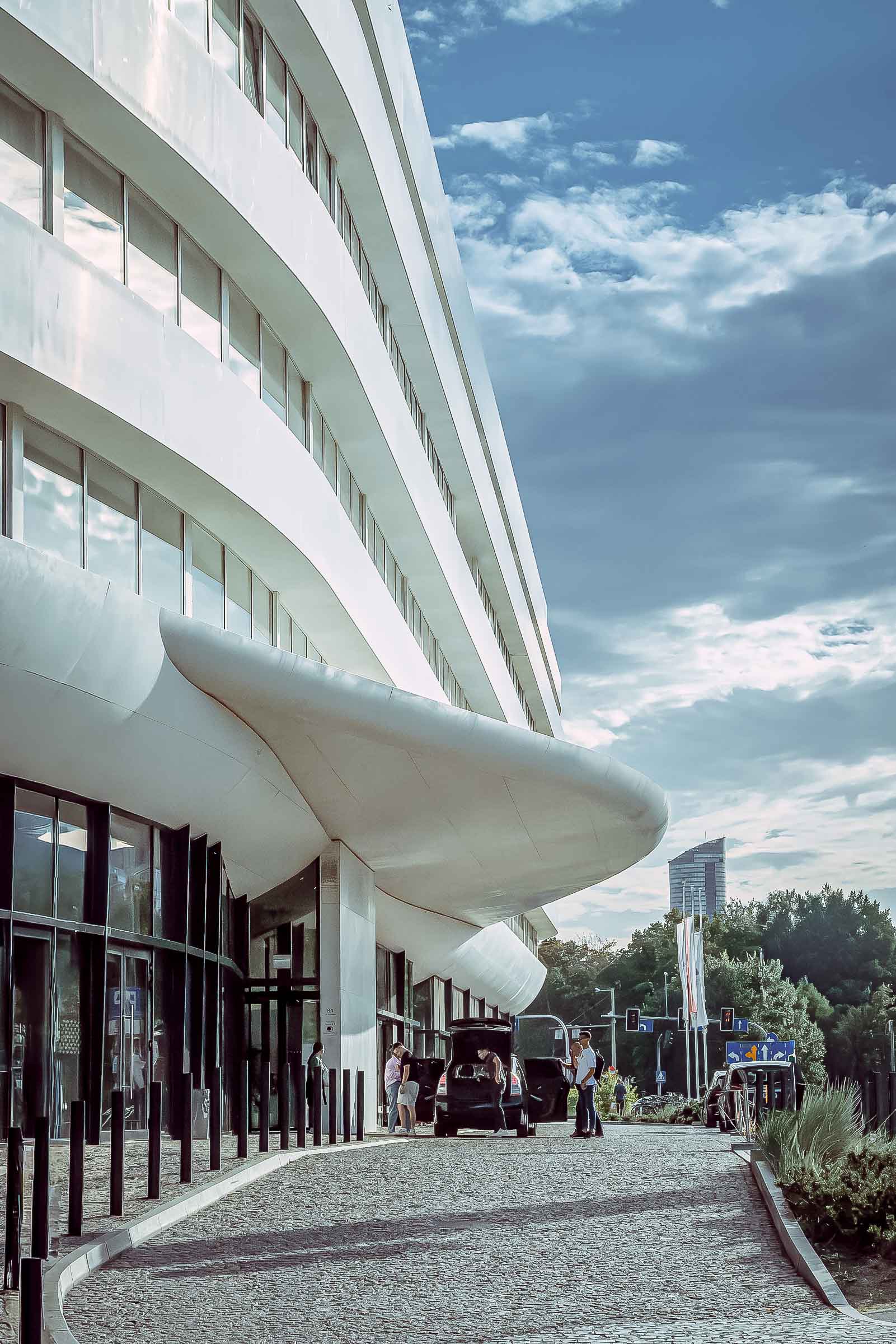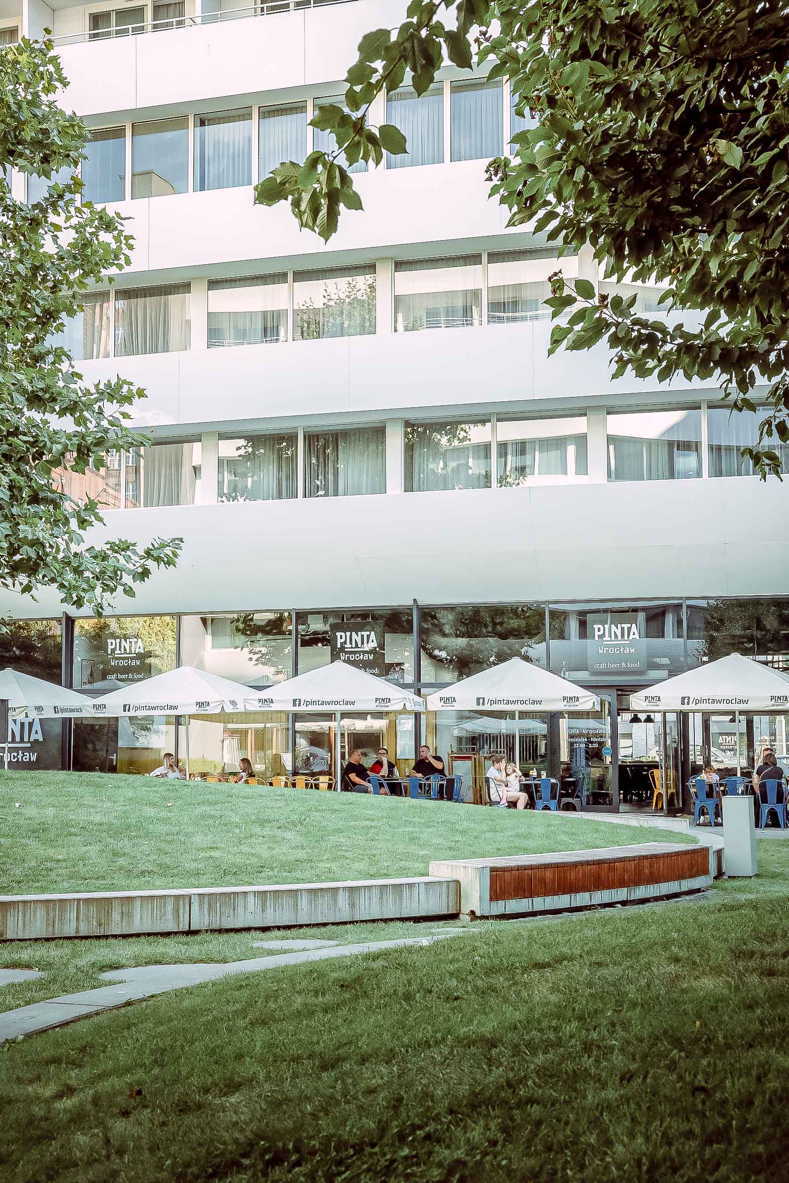 Za odważnym projektem wrocławskiego bloba stoi paryska pracownia Gottesman-Szmelcman Architecture. To wielofunkcyjny budynek łączący w sobie 5-gwiazdkowy hotel sieci Hilton, ekskluzywny apartamentowiec, biura, punkty usługowe i gastronomiczne. Wygląda elegancko i zaprasza przechodniów do wizyty nie tylko usługami w parterze. Kusi również dużym ogólnodostępnym zielonym patio, na które wchodzi się wprost z ulicznego chodnika.